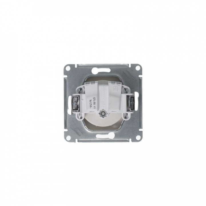 Механизм Systeme Electric (ранее Schneider Electric) серии Glossa (цвет платина) розетки одинарной с заземлением и без шторок подходит для сетей 250 В, на ток 16 А. - Заземляющий контакт обеспечивает дополнительную защиту от удара электрическим током. При наличии заземления электрический потенциал уходит в землю, защищая человека. - Выполнен из материала PС+ASA, стойкого к УФ-излучению и появлению царапин. - Эргономичные клеммы розеток расположены в один ряд.
