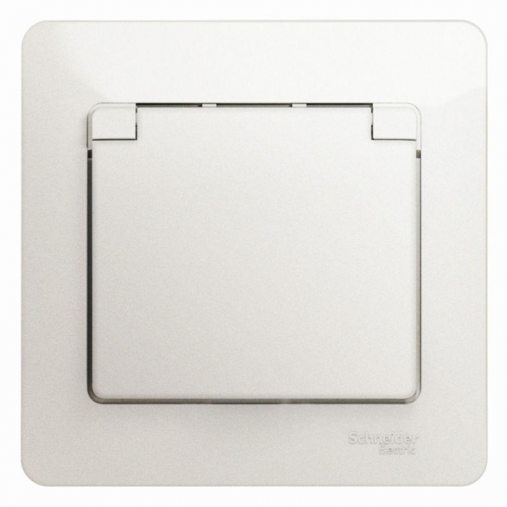 Розетка Systeme Electric (ранее Schneider Electric) серии Glossa (в сборе, цвет перламутр) одинарная с заземлением, шторками и крышкой подходит для сетей 250 В, на ток 16 А. - Заземляющий контакт обеспечивает дополнительную защиту от удара электрическим током. При наличии заземления электрический потенциал уходит в землю, защищая человека. - Выполнен из материала PС+ASA, стойкого к УФ-излучению и появлению царапин. - Эргономичные клеммы розеток расположены в один ряд.