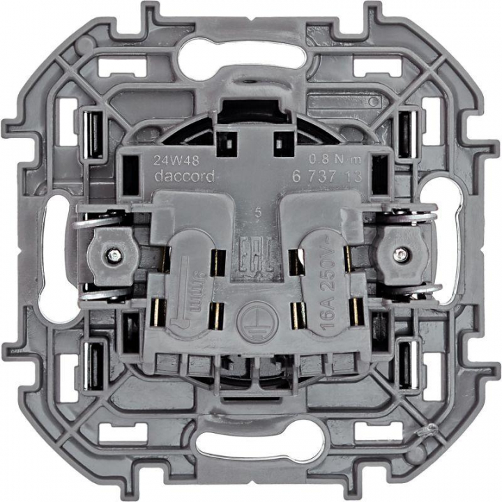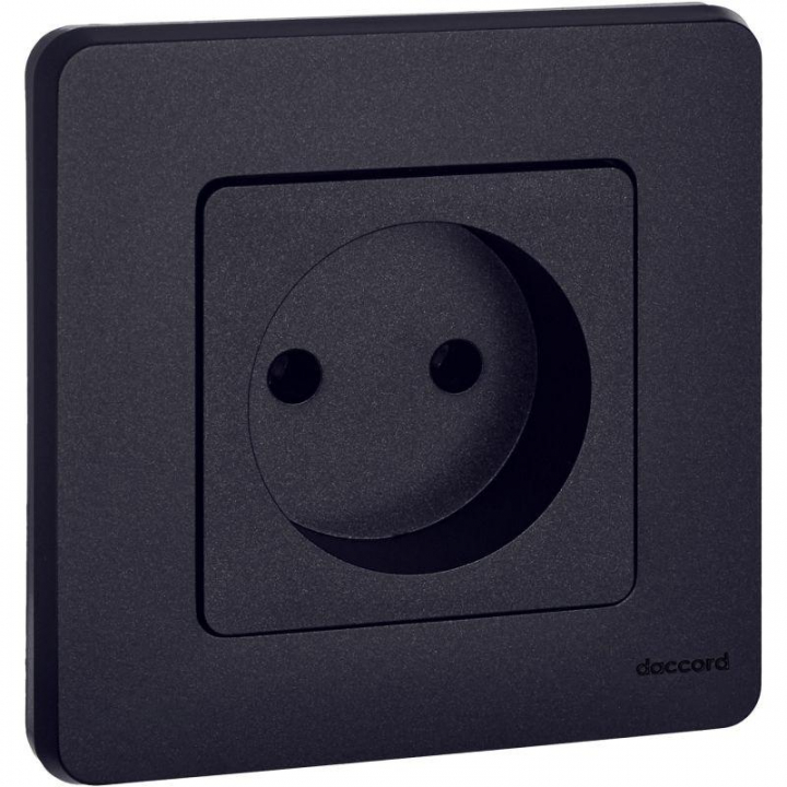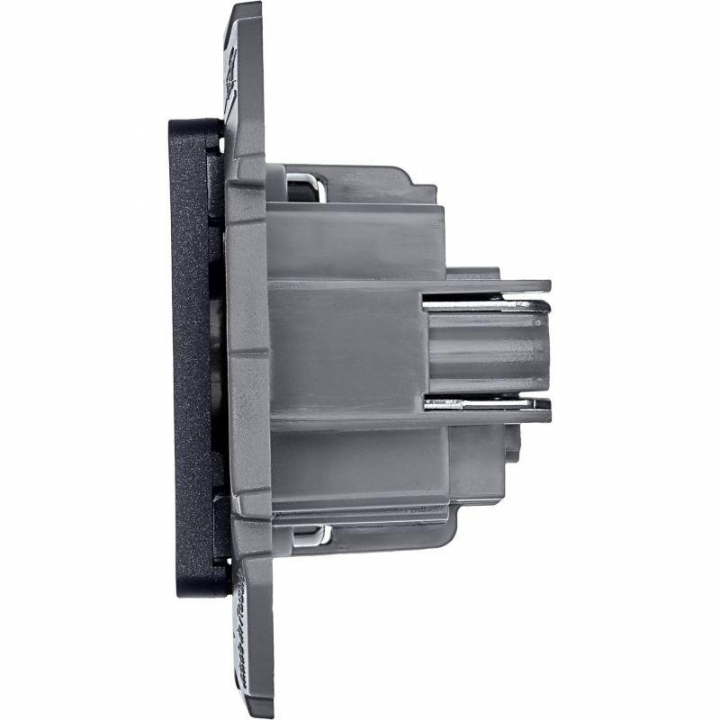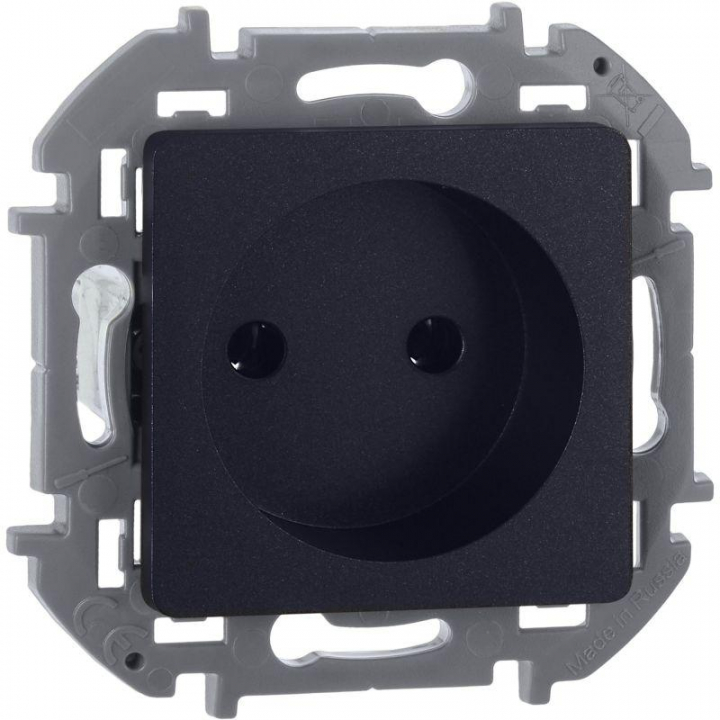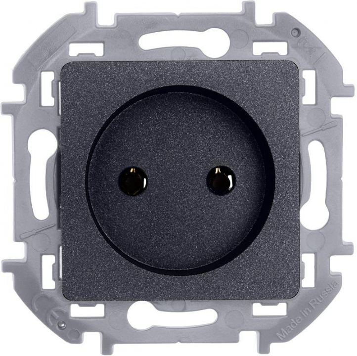 Розетка без заземления для скрытого монтажа Inspiria, цвет "Антрацит", максимальный ток 16А, напряжение ~250В, максимальная мощность 3680Вт, винтовые зажимы. Применяется для присоединения однофазных электрических потребителей к сети переменного тока в зданиях с проводкой без заземления (без защитного проводника).