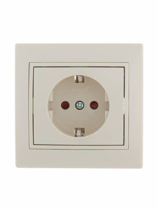 Розетка 1-м СП Mira 16А IP20 с заземл. защ. шторки со вставкой керамика крем. LEZARD 701-0303-124