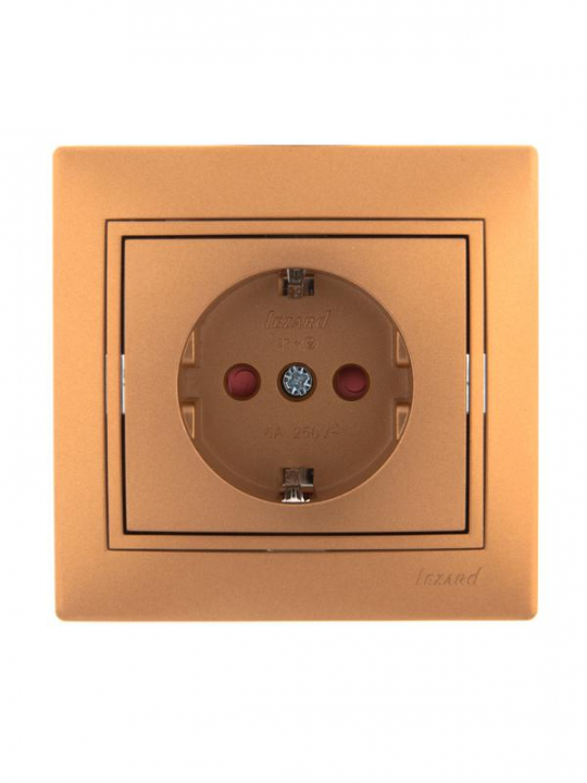 Розетка 1-м СП Mira 16А IP20 с заземл. защ. шторки со вставкой керамика зол. метал. LEZARD 701-1313-124