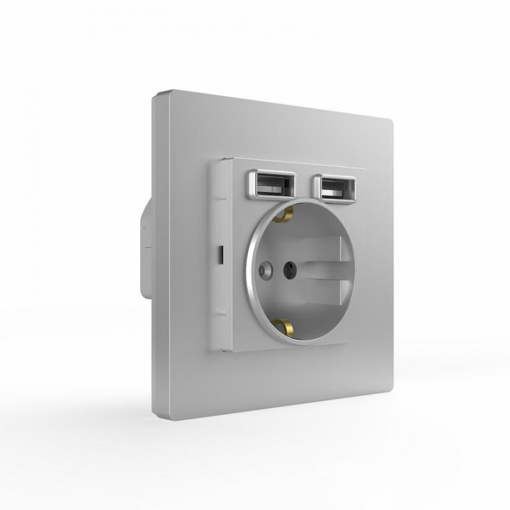 Розетка 1-м СП Pixel с заземл. с 2-мя заряд. устр. USB тип A+A механизм алюм. TOKOV ELECTRIC TKE-PX-R1U2A-C03