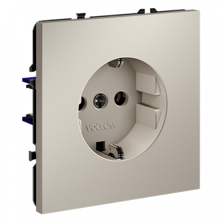 Место установки. Простота установки и демонтажа, стильный дизайн и высокое качество делают розетки Voltum идеальным выбором для дома, офиса или любых других помещений, соответствующих инструкции по эксплуатации. Корпус. Внешние накладки и корпус выполнены из поликарбоната — долговечного и безопасного материала. Он не разлагается под действием ультрафиолета и стойко выдерживает повышенные температуры, вызванные протекающими токами. Конструктивные особенности. Контактные пары выполнены из бронзы, а заземляющие контакты — с дополнительным гальваническим покрытием. Бронза обеспечивает высокую безопасность при подключении электроприборов и эффективную бесперебойную передачу тока, сохраняя передаточное усилие, что повышает срок безотказной эксплуатации.