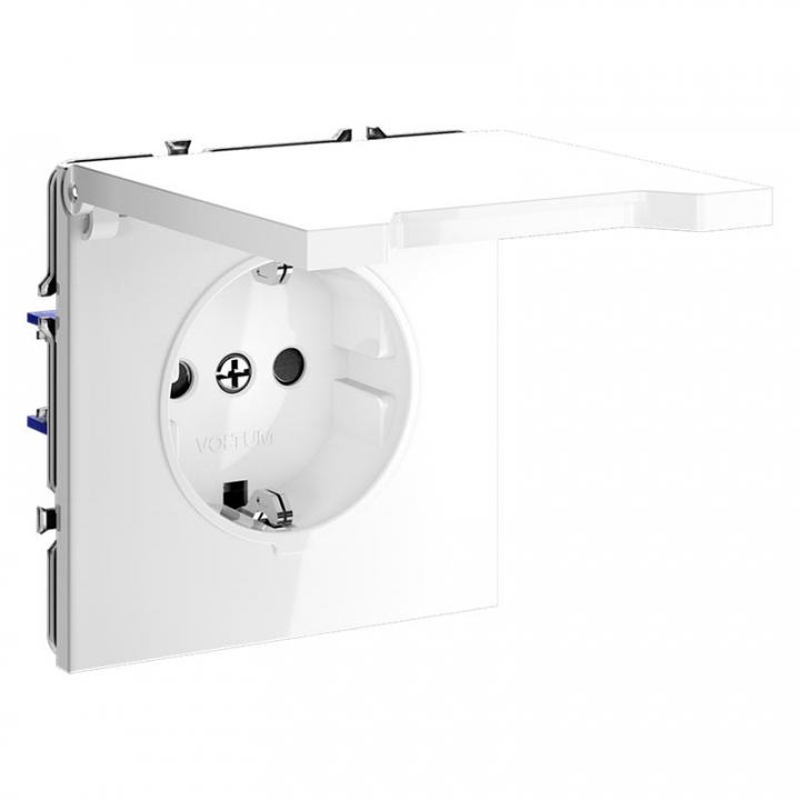 Розетка 1-м СП S70 16А с заземл. защ. шторки + крышка механизм бел. глянцевый Voltum VLS040301