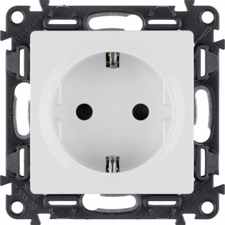 Механизм розетки Valena Life 16А 250В 2К+З защ. шторки безвинт. зажимы с лицевой панелью бел. Leg 753420 – электроустановочный механизм. Представляет собой розетку из пластика, с лицевой панелью белого цвета, скрытой установки, монтируемый под штукатурку, на глубине не менее 40 мм. Предусмотрены защитные шторки, автоматически закрывающие гнезда розетки при вынутой вилке.