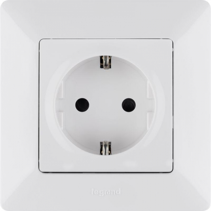Розетка 1-м СП Valena Life 16А IP20 250В 2P+E защ. шторки безвинтов. клеммы с лицев. панелью механизм бел. Leg 753420