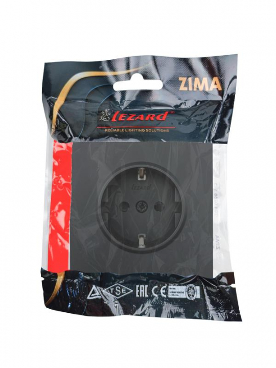 Розетка 1-мест. с защитн.шторк. ПБТ СП ZIMA IP20 10А безвинт. зажим черн. бархат LEZARD 704-4288-124BQC