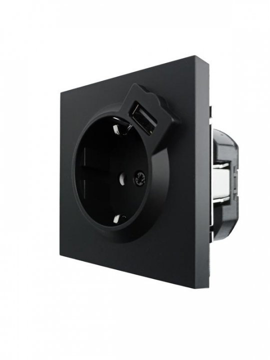 Розетка 1-мест. с/з+USB разъем СП ZIMA IP20 черн. бархат LEZARD 704-4288-181