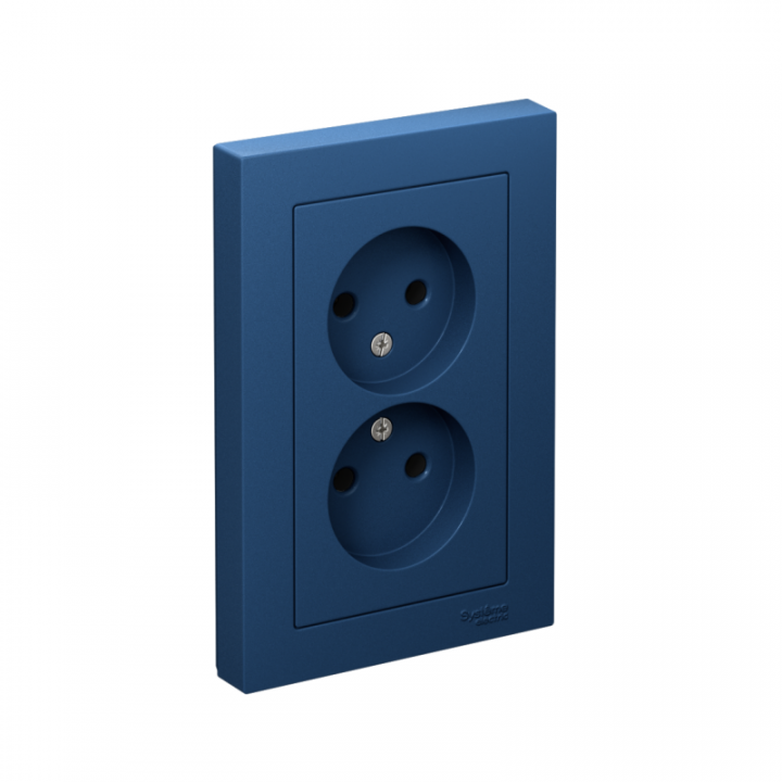 Розетка двойная в сборе Systeme Electric (ранее Schneider Electric) серии AtlasDesign в цвете аквамарин без заземления и без шторок подходит для сетей 250 В, на ток 16 А. Лицевые детали из качественного ABS-пластика, устойчивого к царапинам и УФ-излучению. Двойная розетка позволяет подключить два устройства в одном месте. Изделие поставляется в комплекте с рамкой того же цвета.