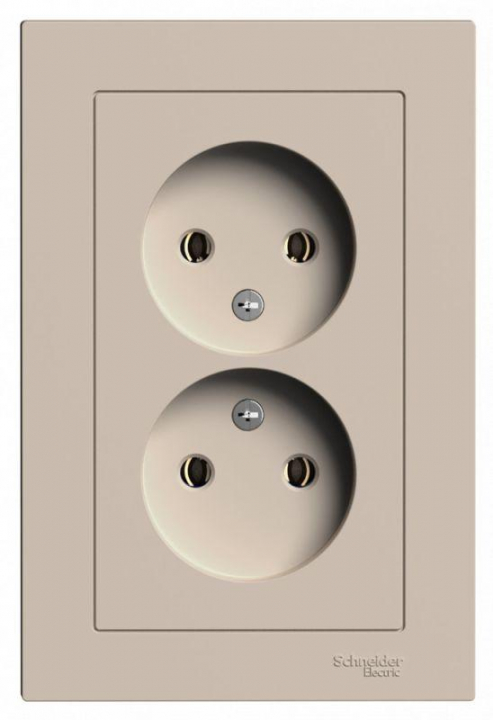 Розетка двойная в сборе Systeme Electric (ранее Schneider Electric) серии AtlasDesign в цвете песочный без заземления и без шторок подходит для сетей 250 В, на ток 16 А. Лицевые детали из качественного ABS-пластика, устойчивого к царапинам и УФ-излучению. Двойная розетка позволяет подключить два устройства в одном месте. Изделие поставляется в комплекте с рамкой того же цвета.