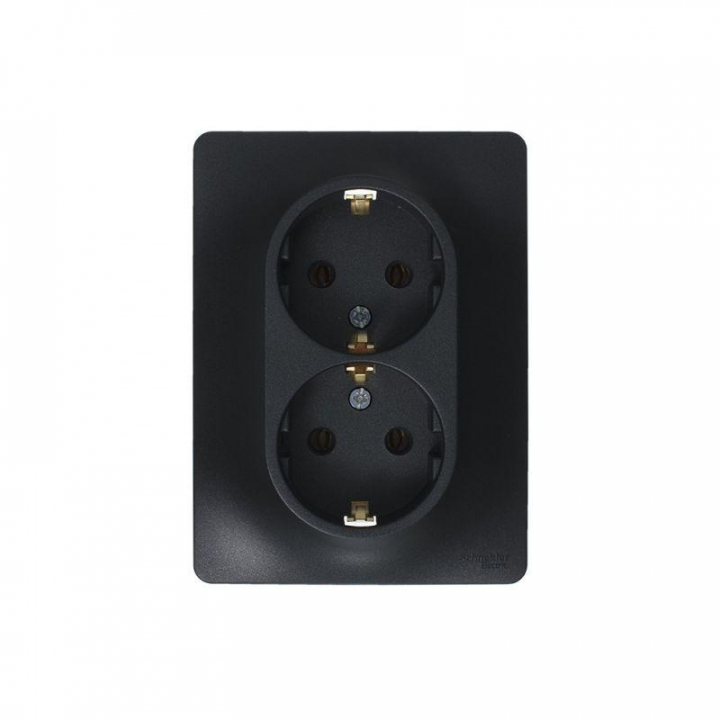 Розетка двойная Systeme Electric (ранее Schneider Electric) серии Glossa (в сборе, цвет антрацит) с заземлением, без шторок подходит для сетей 250 В, на ток 16 А. Заземляющий контакт обеспечивает дополнительную защиту от удара электрическим током. При наличии заземления электрический потенциал уходит в землю, защищая человека. Выполнен из материала PС+ASA, стойкого к УФ-излучению и появлению царапин. Двойная розетка позволяет подключить два устройства в одном месте.