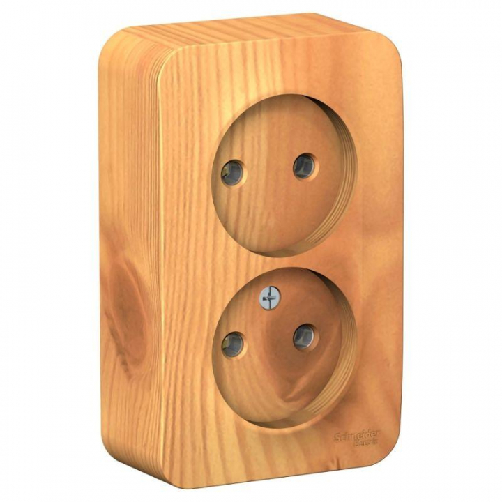 Розетка Systeme Electric (ранее Schneider Electric) BLANCA (ясень, открытой установки) двухместная, без шторок и заземления, с изолирующей пластиной предназначена для сетей до 250В, на ток до 16А. Двухместная розетка позволяет подключить два устройства в одном месте. Изделия цвета Ясень обладают уникальным рисунком, напоминающим древесный сруб. Она изготовлена из ABS-пластика, проста в установке и удобна в применении.