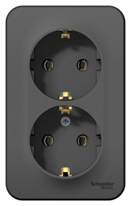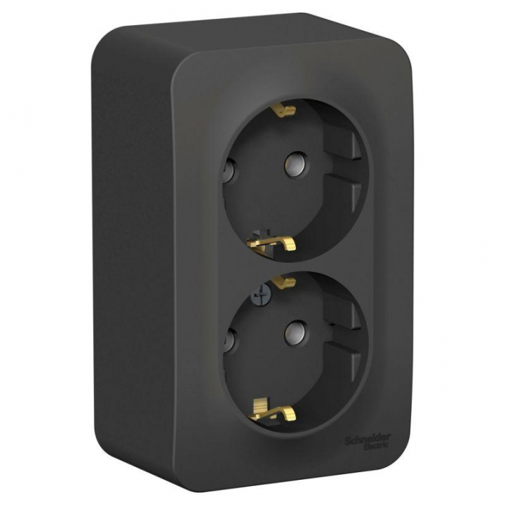 Розетка Systeme Electric (ранее Schneider Electric) BLANCA (антрацит, открытой установки) двухместная, с заземлением, без шторок предназначена для сетей до 250В, на ток до 16А. Двухместная розетка позволяет подключить два устройства в одном месте. Заземление обеспечивает безопасность при косвенном прикосновении. Она изготовлена из ABS-пластика, проста в установке и удобна в применении.