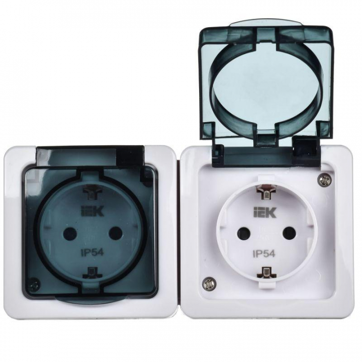 Розетка 2-м ОП Гермес Plus РСб22-3-ГПБд 16А IP54 с заземл. с дым. крышкой бел. IEK ERMP22-K03-16-54-EC