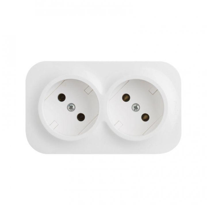 Розетка двухместная без заземления и защитных шторок QUTEO для открытого монтажа. Применяется в зданиях с проводкой без заземляющего контакта. Подходит для жилых комнат, офисов и других помещений со стандартными требованиями к электробезопасности. Надежные винтовые зажимы обеспечивают качественное соединение проводов, а компактные размеры и нейтральный дизайн делают эту розетку универсальным выбором для любого интерьера.