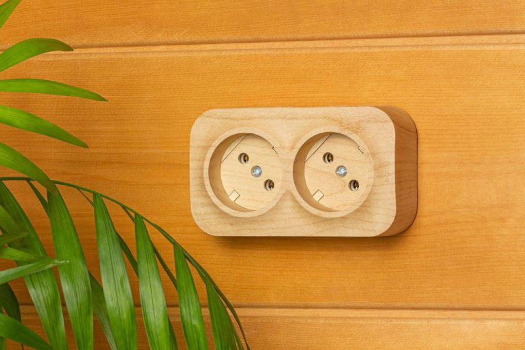 Розетка 2-м ОП Quteo 16А IP20 250В 2х2P без заземл. без защ. шторок дерево IEK 782281