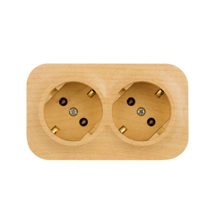Розетка 2-м ОП Quteo 16А IP20 250В 2х2P+E с заземл. без защ. шторок дерево IEK 782293