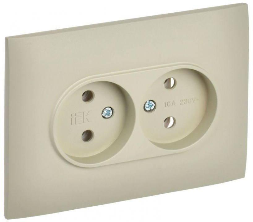 Розетка 2-м SKANDY 10А без заземл. без защ. шторок в сборе SK-R10B беж. IEK SK-R20-10-K10-F