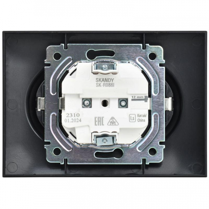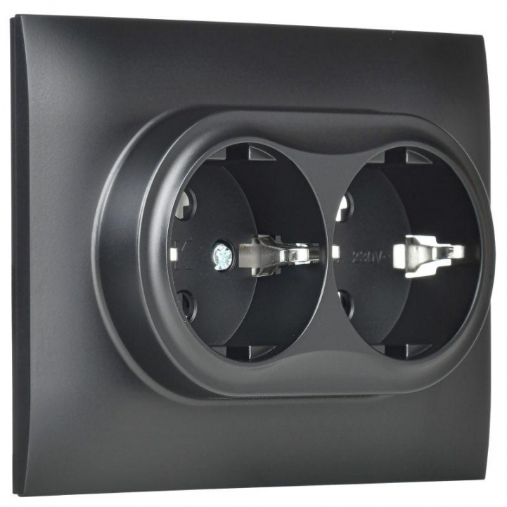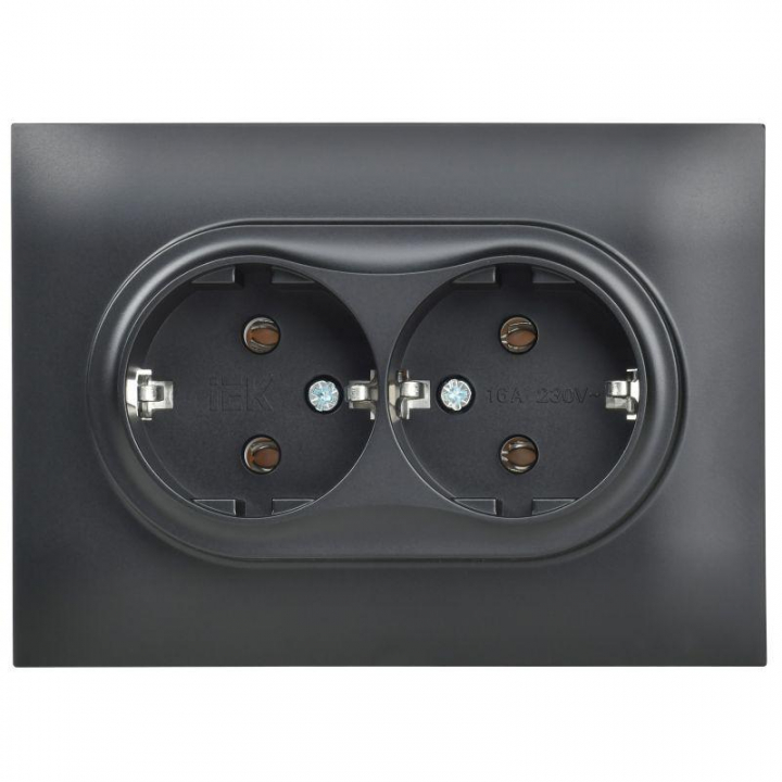 Розетка 2-м SKANDY 16А с заземл. без защ. шторок в сборе SK-R08Bl черн. IEK SK-R21-16-K02-F