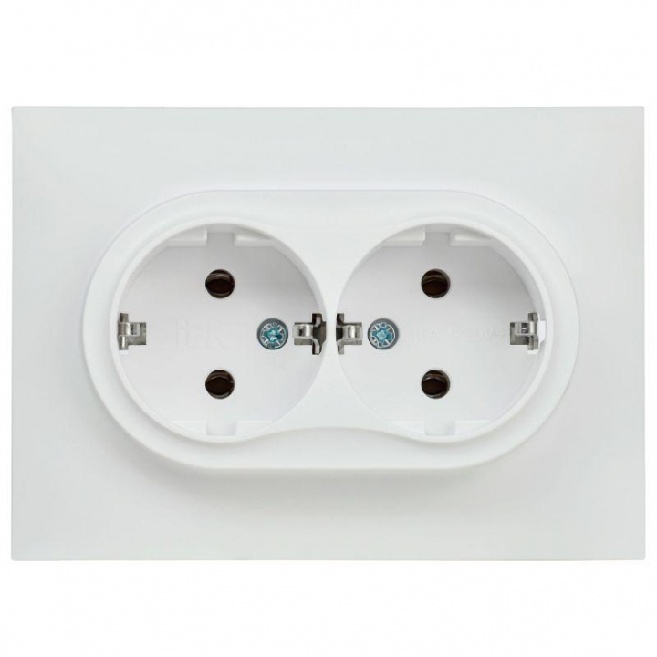 Розетка 2-м SKANDY 16А с заземл. без защ. шторок в сборе SK-R08W арктич. бел. IEK SK-R21-16-K01-F