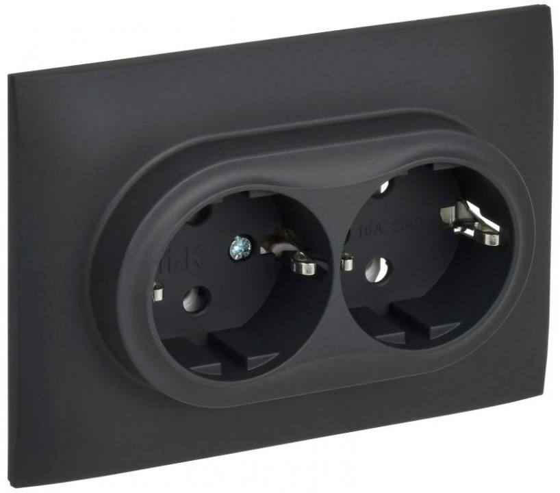 Розетка 2-м SKANDY 16А с заземл. без защ. шторок в сборе SK-R08G графит IEK SK-R21-16-K53-F