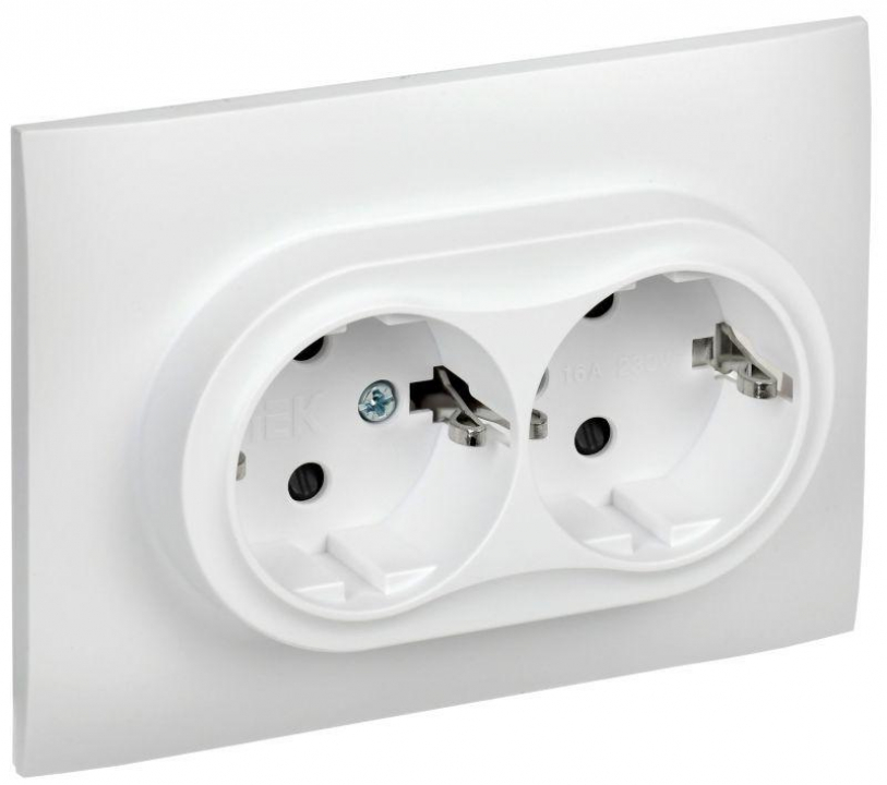 Розетка 2-м SKANDY 16А с заземл. защ. шторки в сборе SK-R07W арктич. бел. IEK SK-R24-16-K01-F