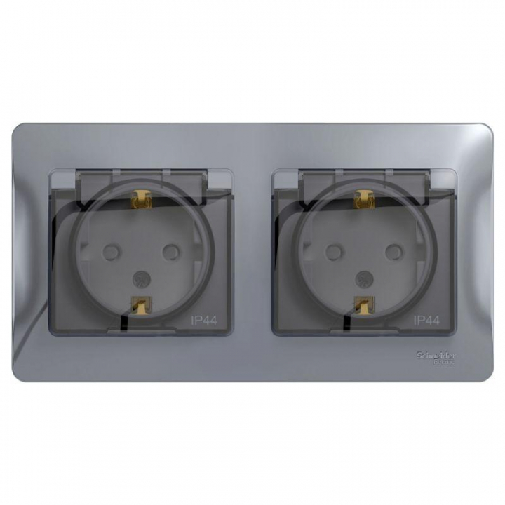 Розетка 2-м СП 2мод. Glossa 16А IP44 с заземл. защ. шторки в сборе алюм. SE GSL000347