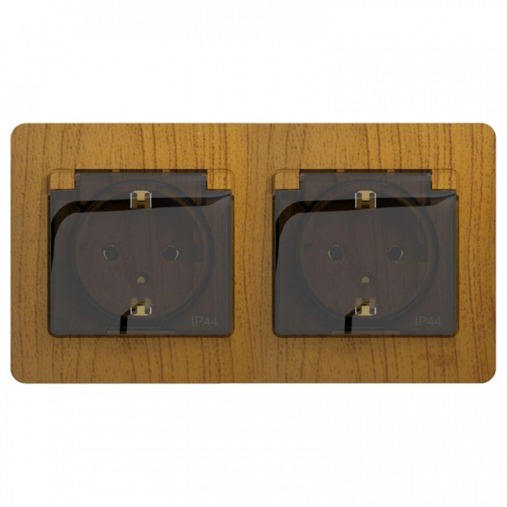 Розетка 2-м СП 2мод. Glossa 16А IP44 с заземл. защ. шторки в сборе дерево дуб SE GSL000547