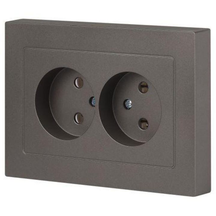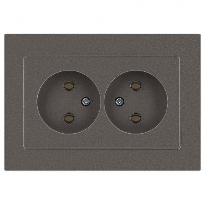 Розетка двойная без заземления серии Intro Accent скрытой установки цвет титан 6-204-09. Номинальные характеристики 16А 250В. Выполнена из негорючего термопласта, оснащена винтовыми клеммами. Парные клеммы обеспечивают соединение шлейфом. Монтаж в подрозетник производится и на лапки, и на винты.