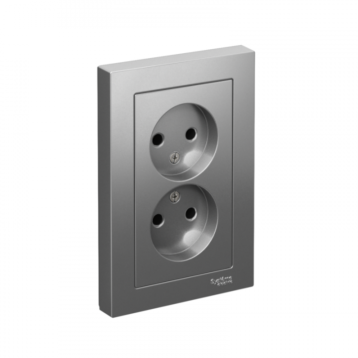 Розетка двойная в сборе Systeme Electric (ранее Schneider Electric) серии AtlasDesign в цвете сталь без заземления и без шторок подходит для сетей 250 В, на ток 16 А. Лицевые детали из качественного ABS-пластика, устойчивого к царапинам и УФ-излучению. Двойная розетка позволяет подключить два устройства в одном месте. Усиленные прямые монтажные лапки для лучшей фиксации механизма в монтажной коробке.