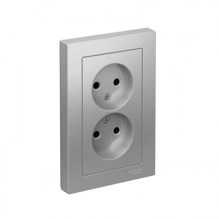 Розетка двойная в сборе Systeme Electric (ранее Schneider Electric) серии AtlasDesign в цвете алюминий без заземления и без шторок подходит для сетей 250 В, на ток 16 А. Лицевые детали из качественного ABS-пластика, устойчивого к царапинам и УФ-излучению. Усиленные прямые монтажные лапки для лучшей фиксации механизма в монтажной коробке. Двойная розетка позволяет подключить два устройства в одном месте. Изделие поставляется в комплекте с рамкой того же цвета.