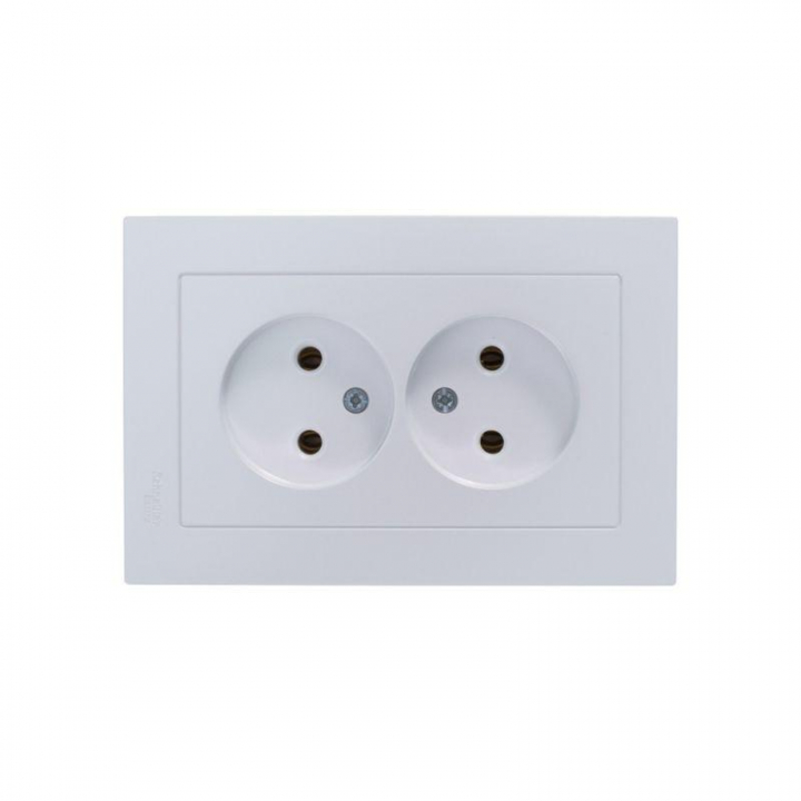 Розетка двойная в сборе Systeme Electric (ранее Schneider Electric) серии AtlasDesign в цвете жемчуг без заземления и без шторок подходит для сетей 250 В, на ток 16 А. Лицевые детали из качественного ABS-пластика, устойчивого к царапинам и УФ-излучению. Двойная розетка позволяет подключить два устройства в одном месте. Изделие поставляется в комплекте с рамкой того же цвета.