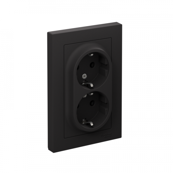 Розетка двойная в сборе Systeme Electric (ранее Schneider Electric) серии AtlasDesign в цвете карбон с заземлением, без шторок подходит для сетей 250 В, на ток 16 А. Заземляющий контакт обеспечивает дополнительную защиту от удара электрическим током. Двойная розетка позволяет подключить два устройства в одном месте. Изделие поставляется в комплекте с рамкой того же цвета. Благодаря покрытию «soft touch» к изделию приятно прикасаться.