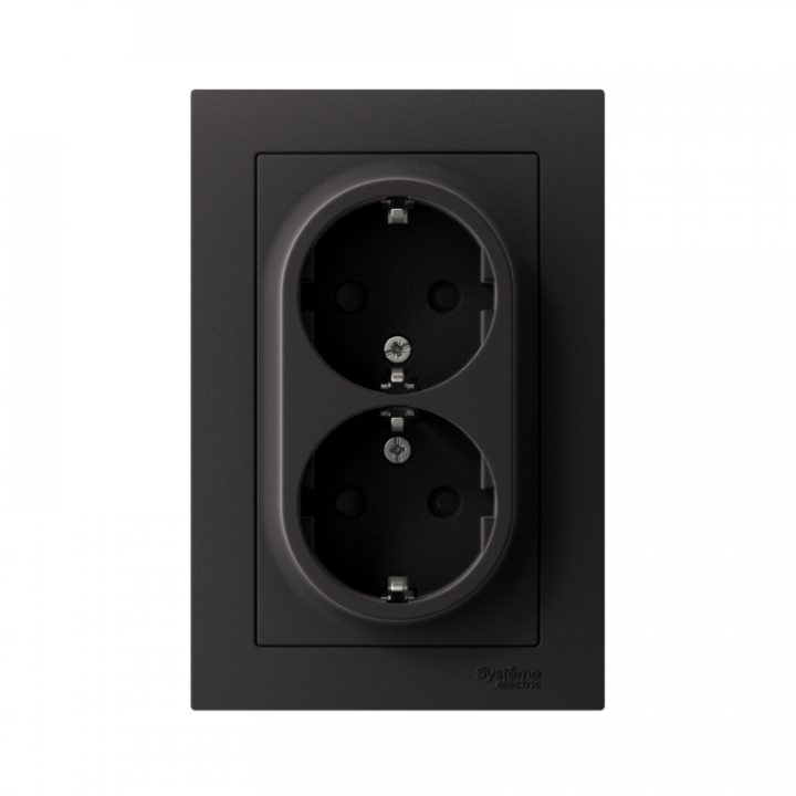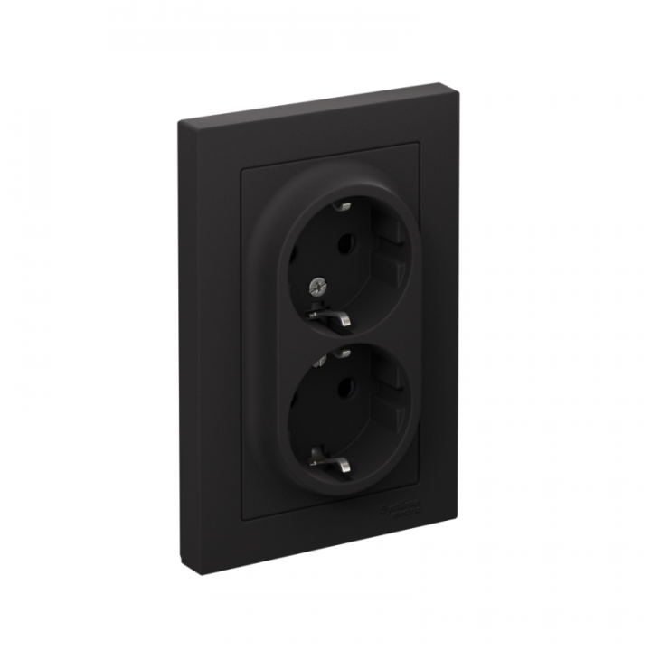 Розетка двойная в сборе Systeme Electric (ранее Schneider Electric) серии AtlasDesign в цвете карбон с заземлением и шторками подходит для сетей 250 В, на ток 16 А. Заземляющий контакт обеспечивает дополнительную защиту от удара электрическим током. Двойная розетка позволяет подключить два устройства в одном месте. Изделие поставляется в комплекте с рамкой того же цвета. Благодаря покрытию «soft touch» к изделию приятно прикасаться.