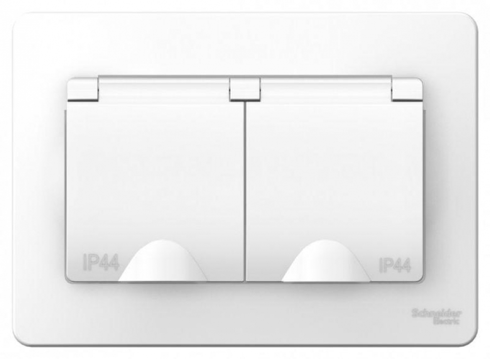 Розетка 2-м СП Blanca 16А IP44 250В с заземл. защ. шторки с крышкой бел. SE BLNRS441121