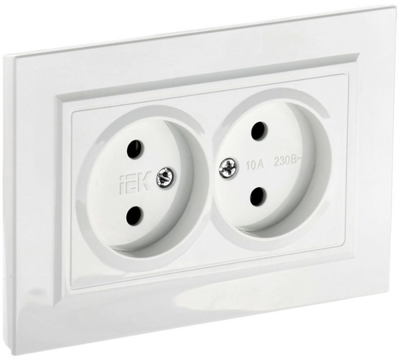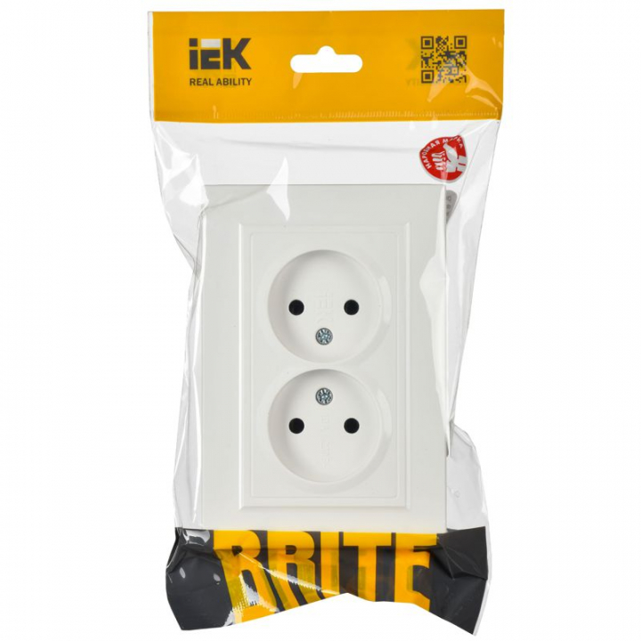 Розетка 2-м СП BRITE РС12-2-БрБ 10А в сборе без заземл. без защ. шторок бел. IEK BR-R20-10-K01-F