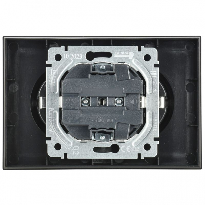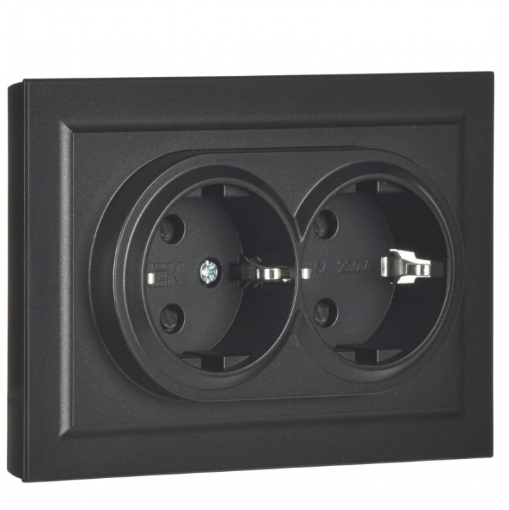 Розетка 2-м СП BRITE РС12-3-БрЧ 16А в сборе с заземл. без защ. шторок черн. IEK BR-R21-16-K02-F