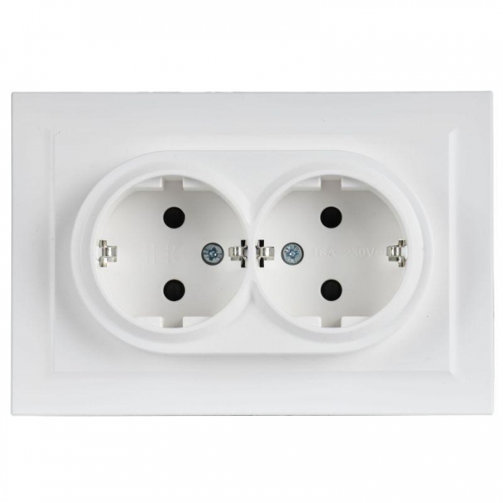 Розетка 2-м СП BRITE РСш12-3-БрАБ 16А в сборе с заземл. защ. шторки арктич. бел. IEK BR-R24-16-K91-F