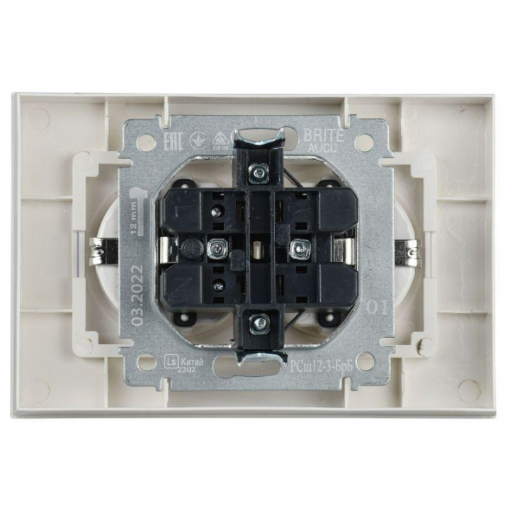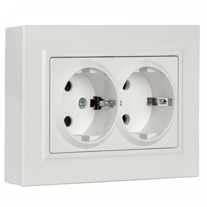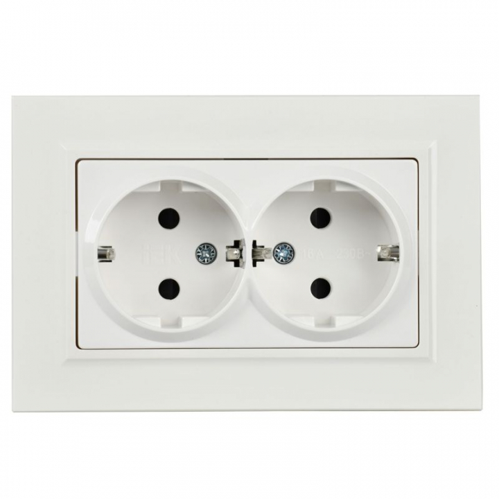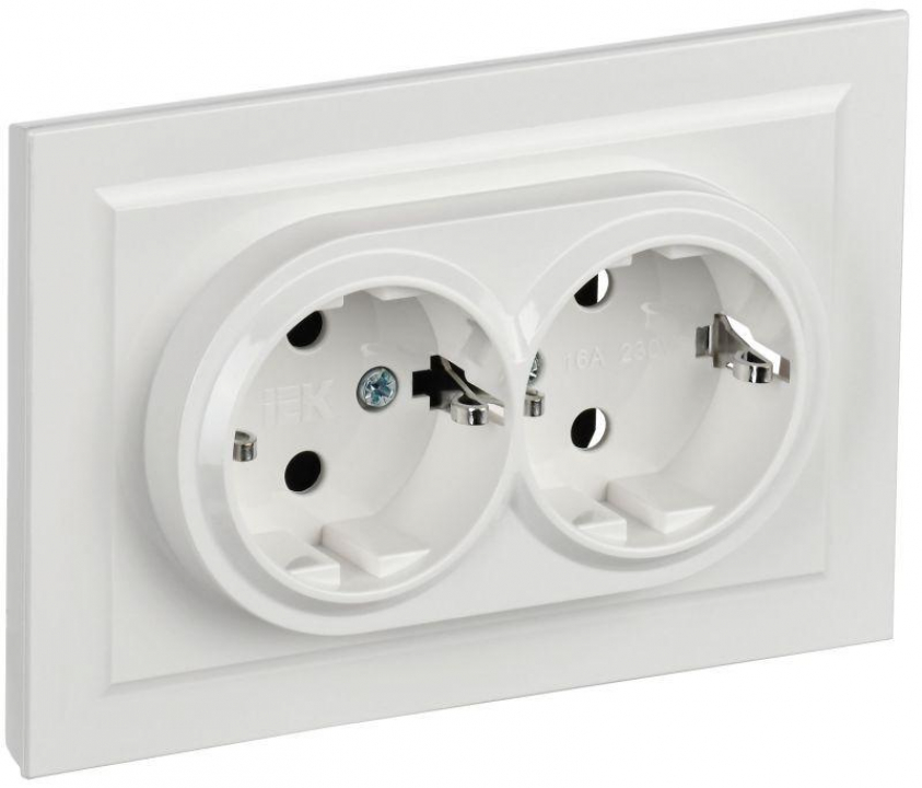 Розетка 2-м СП BRITE РСш12-3-БрБ 16А в сборе с заземл. защ. шторки бел. IEK BR-R24-16-K01-F