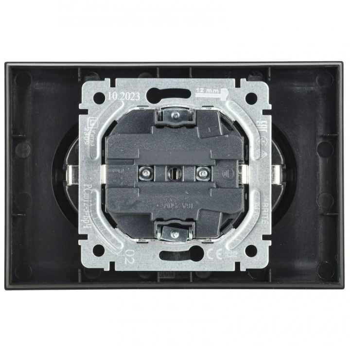 Розетка 2-м СП BRITE РСш12-3-БрЧ 16А в сборе с заземл. защ. шторки черн. IEK BR-R24-16-K02-F