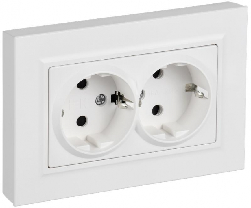 Розетка 2-м СП BRITE РСшПл12-3-БрАБ 16А в сборе с заземл. защ. шторки плоская арктич. бел. IEK BR-R28-16-K91-F