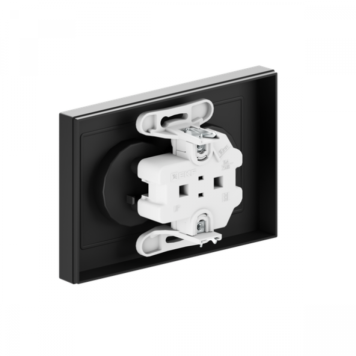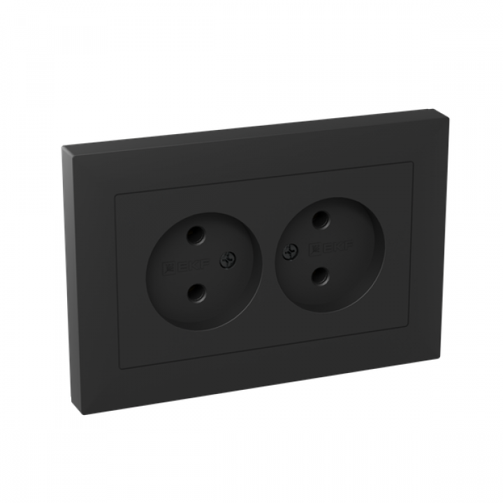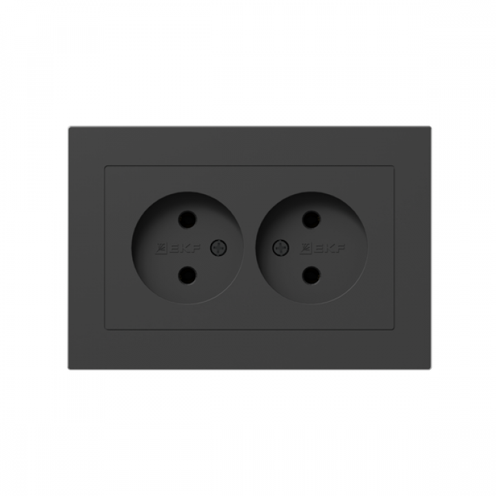 Розетка 2-м СП Эпика 16А без заземл. без защ. шторок с рамкой механизм черн. EKF UP1-SOB-200