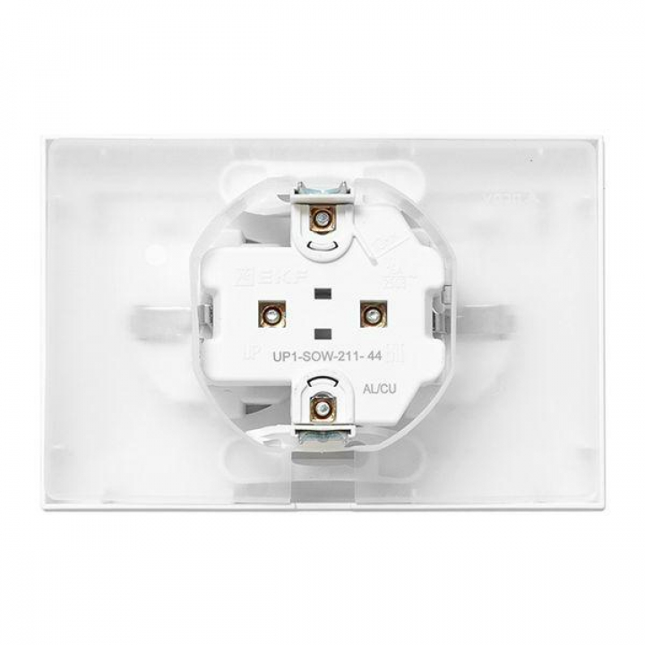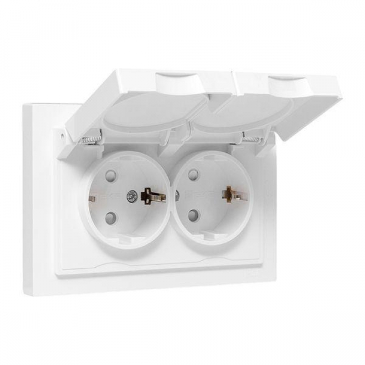 Розетка 2-м СП Эпика 16А IP44 с заземл. защ. шторки с рамкой с крышками механизм бел. EKF UP1-SOW-211-44