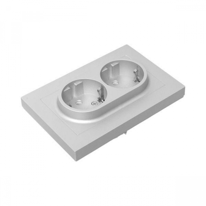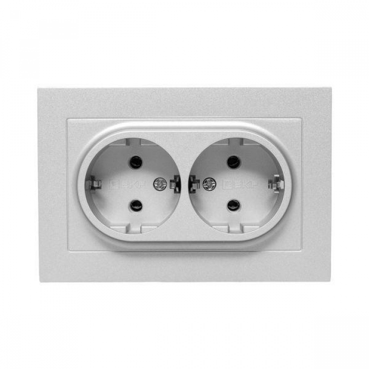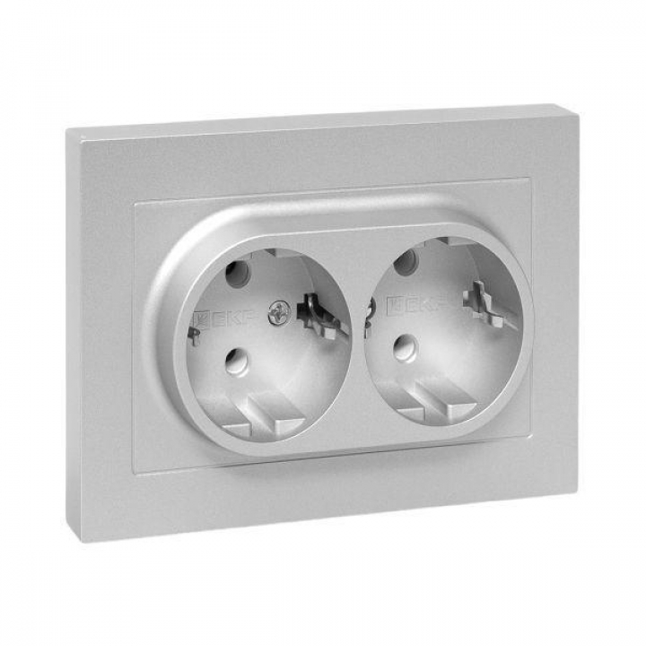 Розетка 2-м СП Эпика 16А с заземл. без защ. шторок с рамкой механизм алюм. EKF UP1-SOA-210