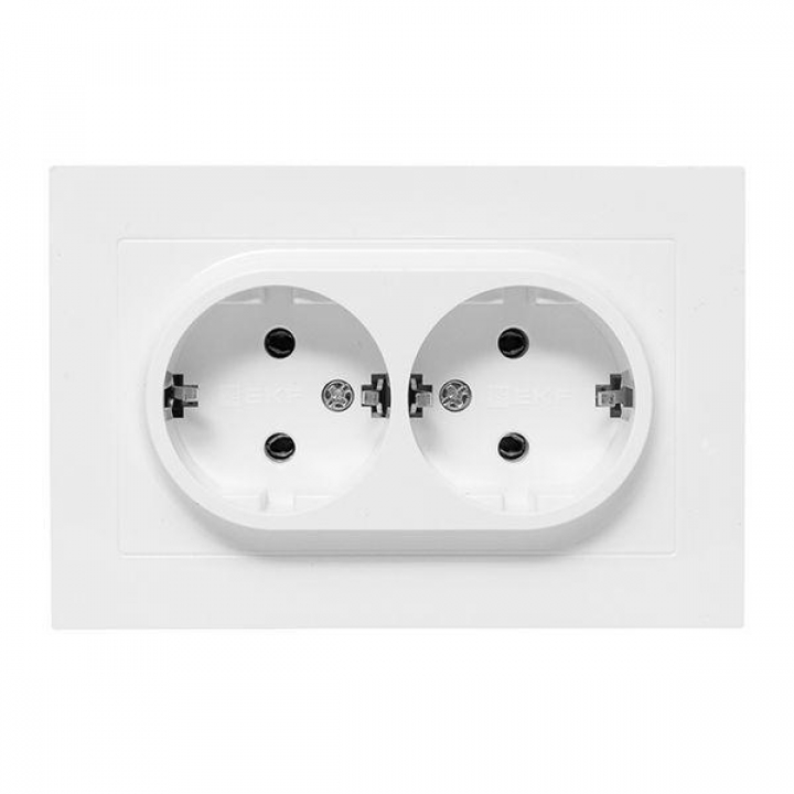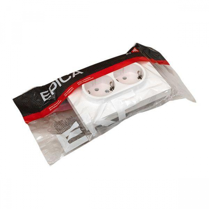 Розетка 2-м СП Эпика 16А с заземл. без защ. шторок с рамкой механизм бел. EKF UP1-SOW-210