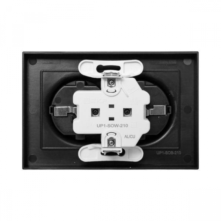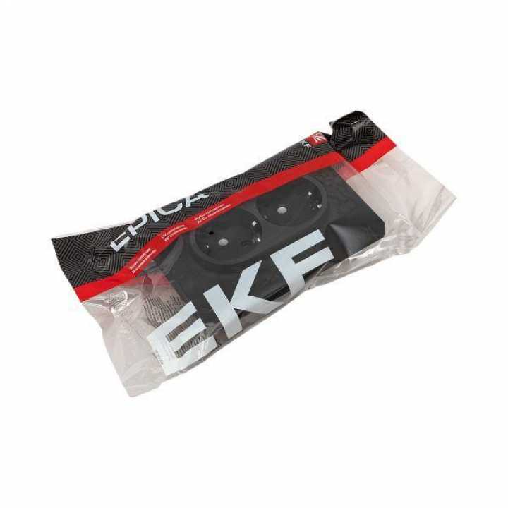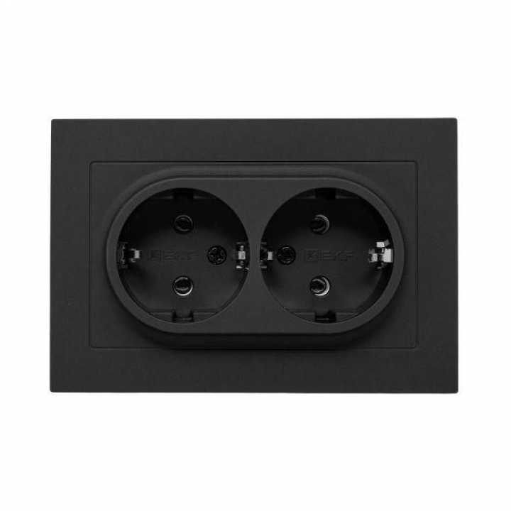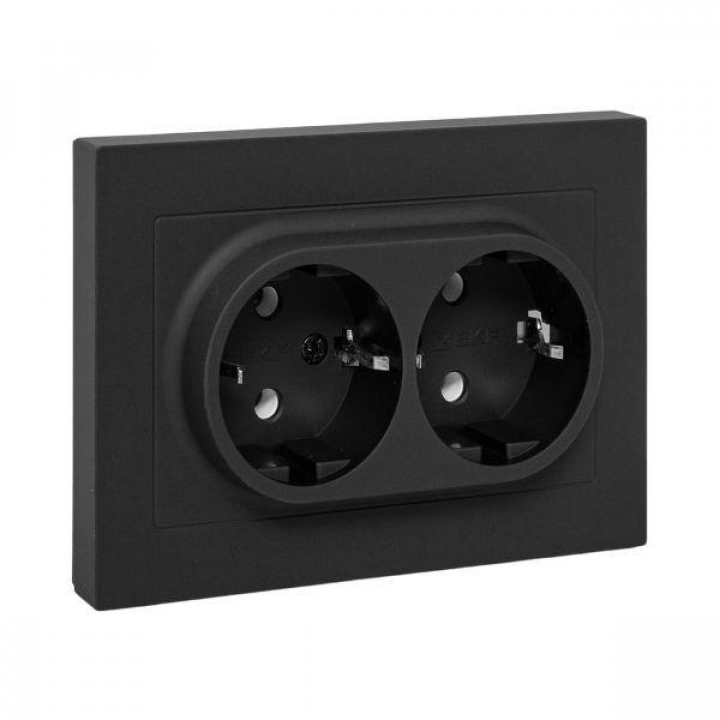 Розетка 2-м СП Эпика 16А с заземл. без защ. шторок с рамкой механизм черн. EKF UP1-SOB-210