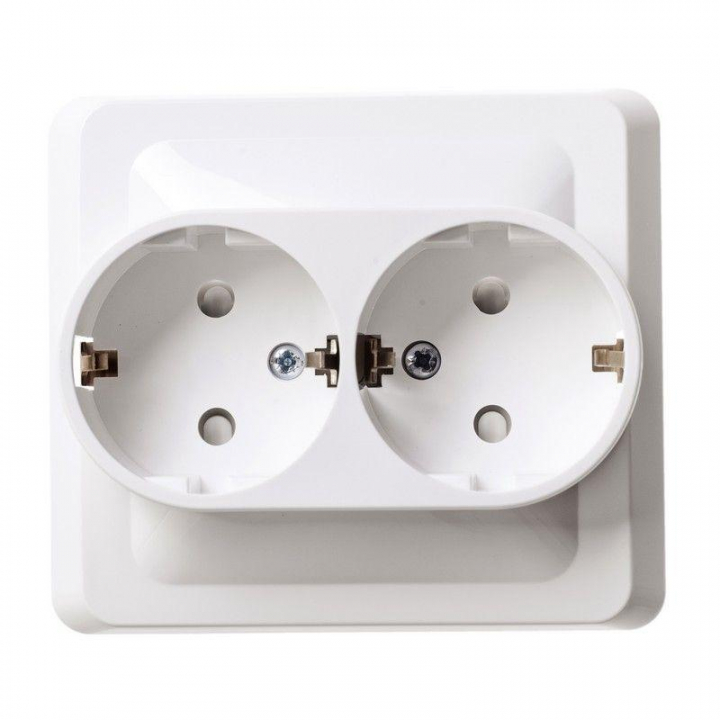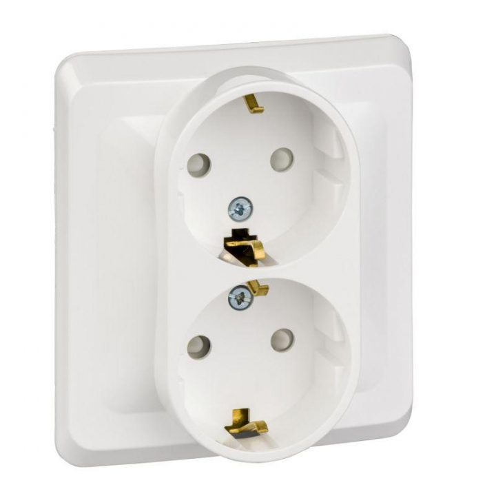 Розетка Systeme Electric (ранее Schneider Electric) ЭТЮД (белый, скрытой установки) двухместная, с заземлением и шторками предназначена для применения в сетях до 250В, на ток до 16А. Двухместная розетка позволяет подключить два устройства в одном месте. Шторки и заземление обеспечивают дополнительную безопасность при косвенных прикосновениях. Сделано в России.