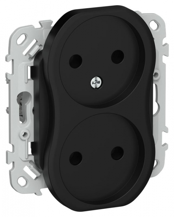 Розетка 2-м СП FLITE РС02-1-ФлЧ 10А без заземл. без защ. шторок безвинтовое крепление механизм черн. IEK FI-R20-10-1-K02