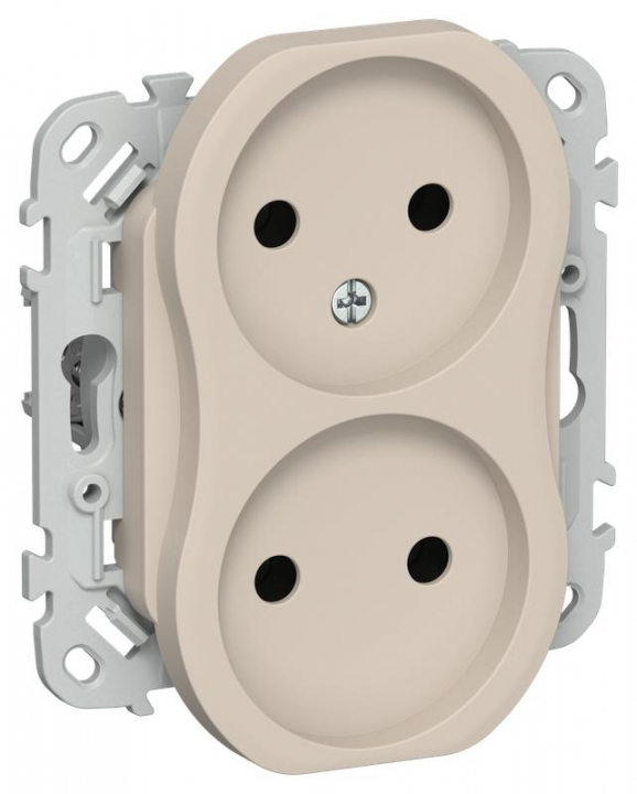 Розетка 2-м СП FLITE РС02-1-ФлЛ 10А без заземл. без защ. шторок безвинтовое крепление механизм льняной IEK FI-R20-10-1-K88