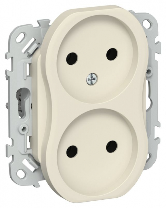 Розетка 2-м СП FLITE РС02-1-ФлСл 10А без заземл. без защ. шторок безвинтовое крепление механизм сливочный IEK FI-R20-10-1-K86